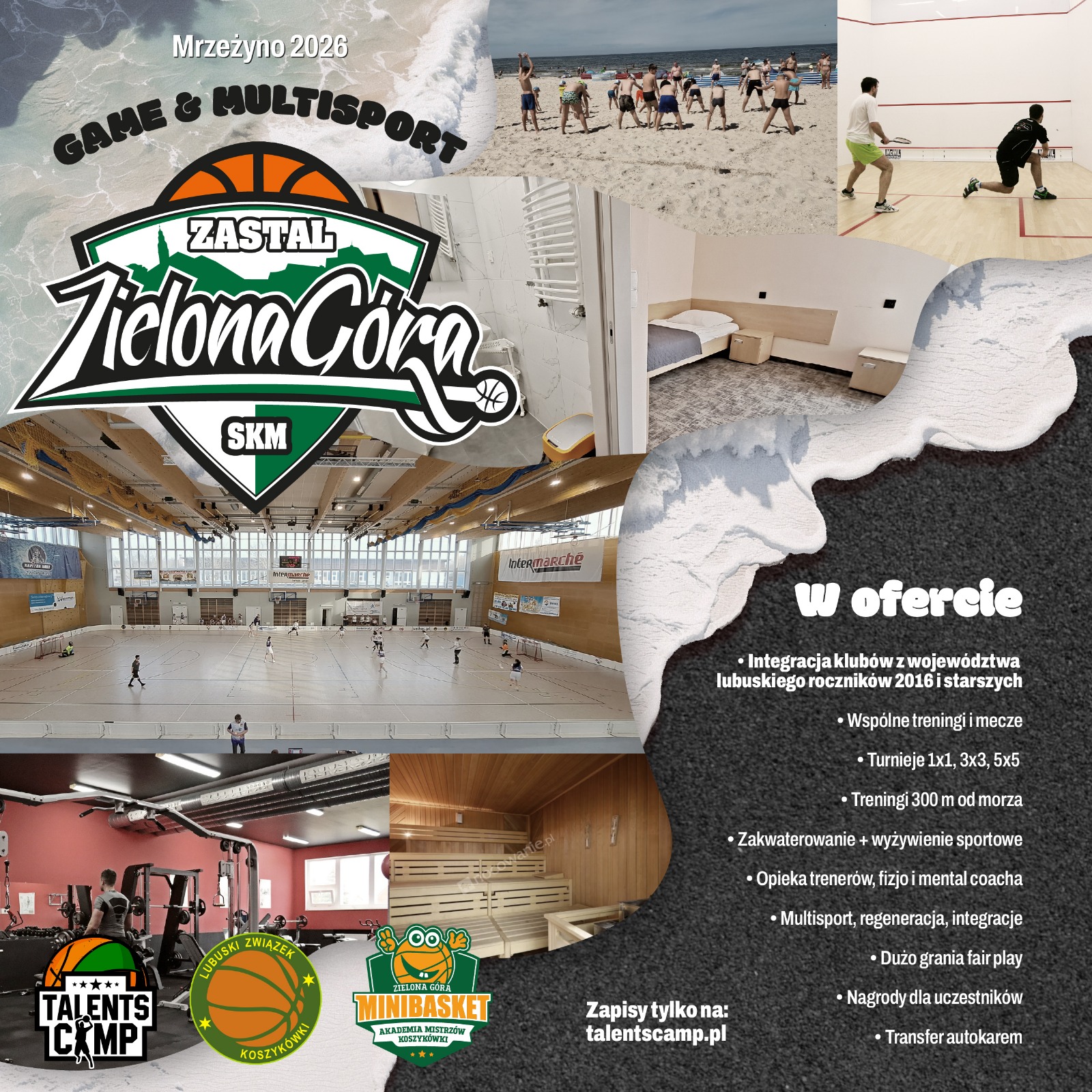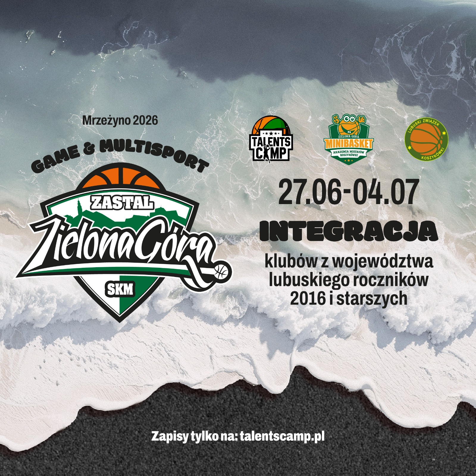 Wyjątkowy 7-dniowy obóz sportowy w formule Game & Multisport, stworzony dla najmłodszych sportowców – zawodników Fundacji Akademia Mistrzów Koszykówki (roczniki 2016–2017) oraz ambitnych zawodników SKM Zastal i partnerskich klubów z województwa lubuskiego (2014–2016).